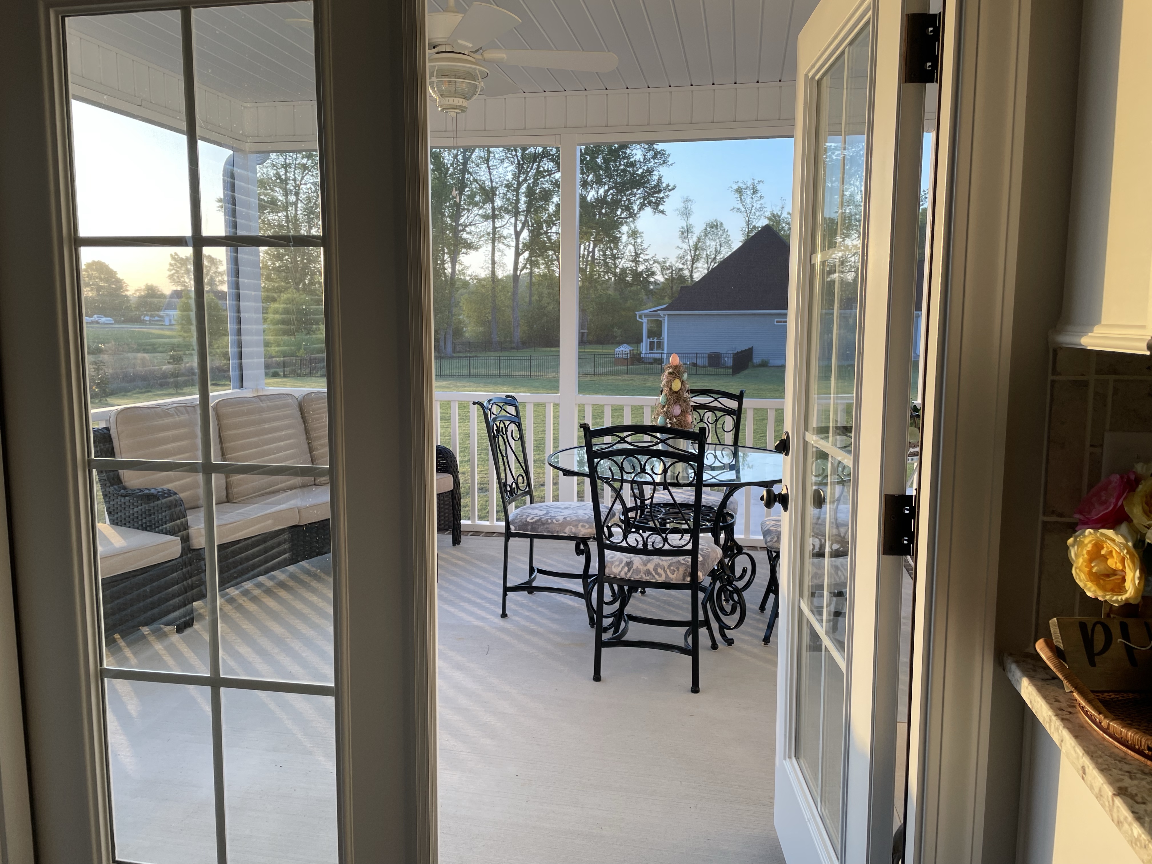 We have been in our house for almost 8 months. Last year this time (spring) this house was just a frame – we would walk this house and pray in almost every space. We had our family come in and pray in the areas where we planned to have future guests. We had friends pray in several rooms. Most importantly, we prayed and dedicated these spaces to The Lord. We wanted to have a home that we could share. A home that would be a place for others to come and feel comfort. – This porch has already had so many good conversations – so much laughter, a few tears, and a lot of love poured out.